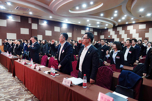 2月18日上午 ,在国歌和司歌的合唱声中 ,虹运基辅材供应链管理有限公司2018年岁情总结暨2019年岁情安排聚会正式召开。