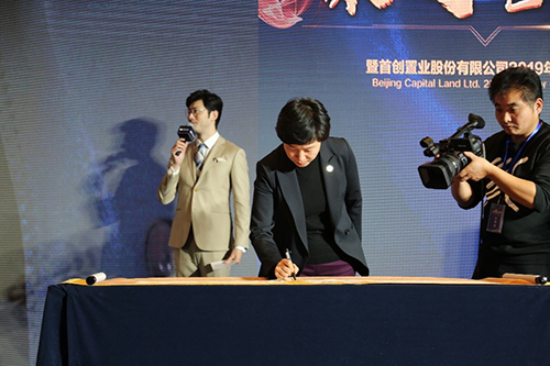 大会最后一个环节为匠心条约签署。首创置业总裁钟北辰、副总裁胡为民及与会的优异供应商代表在匠心条约书上庄重署名。