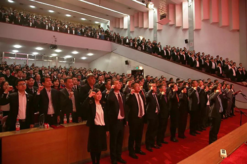 大会最后环节,东方77体育与会职员全体起立,向东方77体育基本法宣誓。