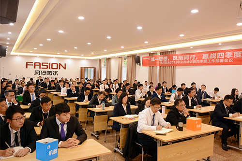 10月12日,盛行防水召开2018年全员培训暨四序度事情安排会,聚会以“统一头脑、风雨偕行、赢战四序度”为主题。
