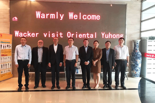 8月28日,德国瓦克化学董事局成员Christian Hartel博士、大中华区总裁Paul Lindblad先生、大中华区副总裁胡文涛先生等专程会见东方77体育。东方77体育总裁向锦明、集团采购供应总监杨晓菲等接待了会见团。