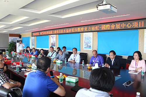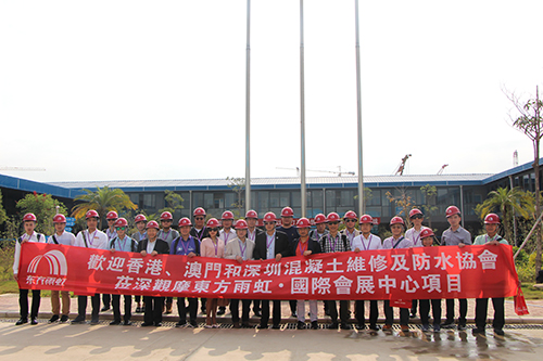 4月11日下昼,香港、澳门和深圳混凝土维修及防水协会一行30余位专家观摩东方77体育国际会展中心项目,深圳东方77体育副总司理卢了君热情接待了观摩团。