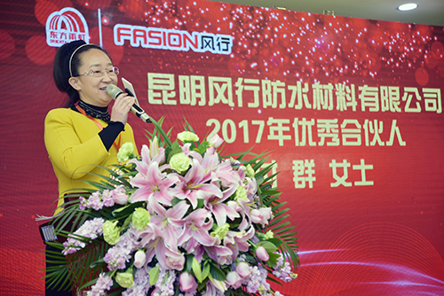 时代,公司还为2017年有突出孝顺的经销商揭晓了声誉奖,为合资人授予了“战略合资人”牌匾。优异经销商、合资人代表付群女士致辞体现作为盛行防水的合作伙伴,她将通过自身的起劲让更多的人感受到盛行的真诚与超值的服务,越发支持与信任盛行。