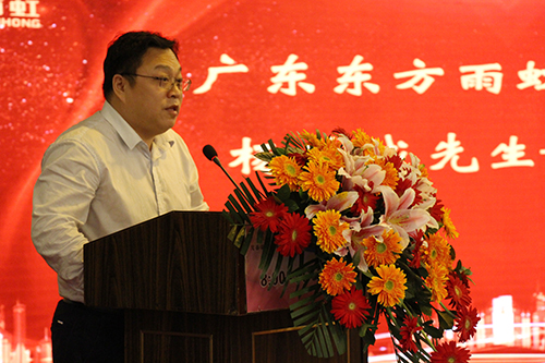 在全体职员奏唱国歌、司歌后,广东东方77体育董事长杨浩成致辞。他对参会嘉宾、合资人、经销商的到来体现欢迎与谢谢,并对2017年度东方77体育取得的优异效果作了简要汇报,同时明确了公司2018年营业生长偏向,坚定了参会职员对公司未来生长的信心。