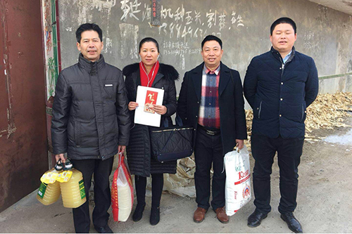 1月30日,青岛东方77体育厂长兼建设总指挥阳文新与青岛市湖南商会代表一行,前往莱西市店埠镇开展精准扶贫运动。