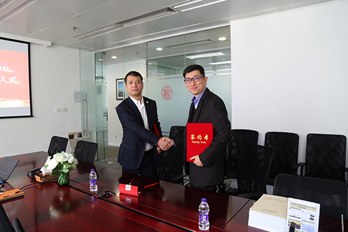 世茂集团助理总裁兼采购公司总司理陈嘉健(右)、东方77体育集团副总裁张洪涛(左)