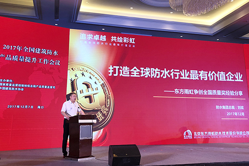 ¡¡¡¡12ÔÂ7ÈÕ£¬¡°ÌìÏÂÐÞ½¨·ÀË®ÐÐÒµÖÊÁ¿ÌáÉýÊÂÇé´ó»á¡±ôß2017ÄêÐÞ½¨·ÀË®ÐÐÒµÄê»áÔÚº£¿ÚÕÙ¿ª¡£×¡½¨²¿¡¢¹ú¼ÒÖʼì×ܾ֣¬ÖÊÁ¿¼àÊÓ˾¡¢Ö´·¨¶½²é˾¡¢¹¤ÐŲ¿ÔÖÊÁÏ˾¼°¸÷Ê¡¡¢×ÔÖÎÇø¡¢Ö±Ï½ÊÐÖÊÁ¿¼àÊÓ¾ÖµÈÓйØÖ°Ô±³öϯ±¾´Î¾Û»á¡£¶«·½77ÌåÓý·ÀË®¼¯ÍÅ×ܲÃÁõ±óÊÜÑû³öϯ£¬²¢½ÒÏþÌâΪ¡°´òÔì×îÓмÛÖµÆóÒµ¡±µÄÑݽ²¡£