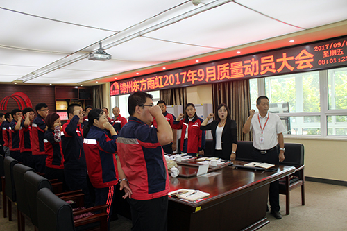 在发动大会上,锦州生产基地厂长许朝晖安排质量月各项事情,并向导参会职员举行质量允许宣誓。他体现,今年1-8月份生产基地在质量管理方面较去年有较大前进,希望各人坚持质量标准化事情,做到一切事情有妄想、有落实的施行。