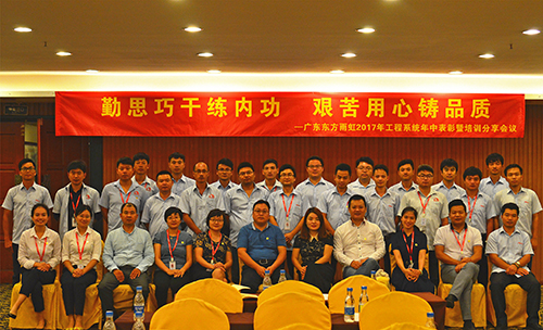 7月29日,广东东方77体育在广州涵天大旅馆召开工程系统2017年年中表扬暨培训聚会。广东东方77体育董事长兼总司理杨浩成、常务副总司理孙福琴、副总司理刘长美、总司理助理张舜苗、王爱超及工程部、质安部全体员工加入本次聚会。