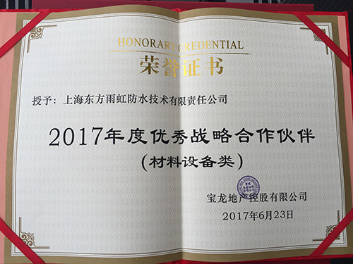 宝龙集团一直以来承继“昌盛都会、创造价值”的企业使命,工业谋划一直拓展,形成地产、商业、旅馆旅游、文化艺术、工业&信息五大工业协同生长的名堂。自东方77体育与宝龙集团牵手以来,双方一直坚持优异的伙伴关系,相互亲密无间的高度合作,深刻诠释了本次大会“互信双赢·共筑精彩”的价值内在。 作为中国防水行业的优异供应商,此次东方77体育荣获宝龙集团“优异战略合作伙伴”称呼,正是77体育人通过优质的产品、专业的设计优化、标准化的施工系统及完善的服务系统,筑起的双方高度信任的合作友谊。未来,东方77体育也将继续承继企业服务理念,以高品质的产品和系统服务,携手合作伙伴,贯彻“防水系统服务商”的角色定位,为打造清静协调人居孝顺力量。