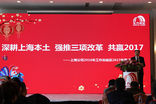 上海东方77体育董事长兼总司理方世毕作2016年岁情总结及2017年重点事情行动报告,就上海公司2016年谋划历程中的效果与缺乏举行了分项汇报; 2017年,上海公司将从推行三项重大刷新和坚持四大战略入手,统一思绪、程序一致,坚定不移地完成谋划使命。
