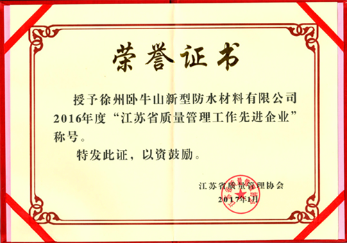 徐州卧牛山荣获“2016年度江苏省质量管理先进企业”称呼
