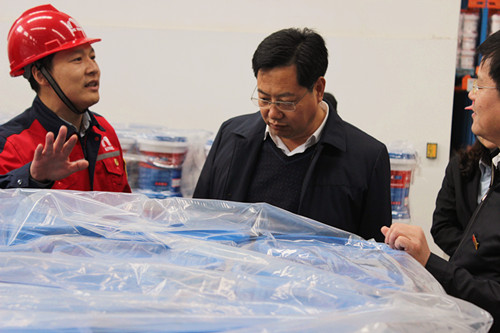 马希良旅行了卷材车间、卷材库房和涂料车间,并对东方77体育先进的装备、优质的产品和高科技的仓储管理系统给予了高度的赞许和一定。鲁家华为考察团先容了咸阳生产基地详细情形,尤其是年产能2000万平米的先进卷材生产线:引进自意大利BOATO的多功效防水卷材生产线和美国R&D公司的3000型防水卷材生产线。作为全球化的防水系统服务商,东方77体育的生产基地正在向高科技全智能化企业生长。